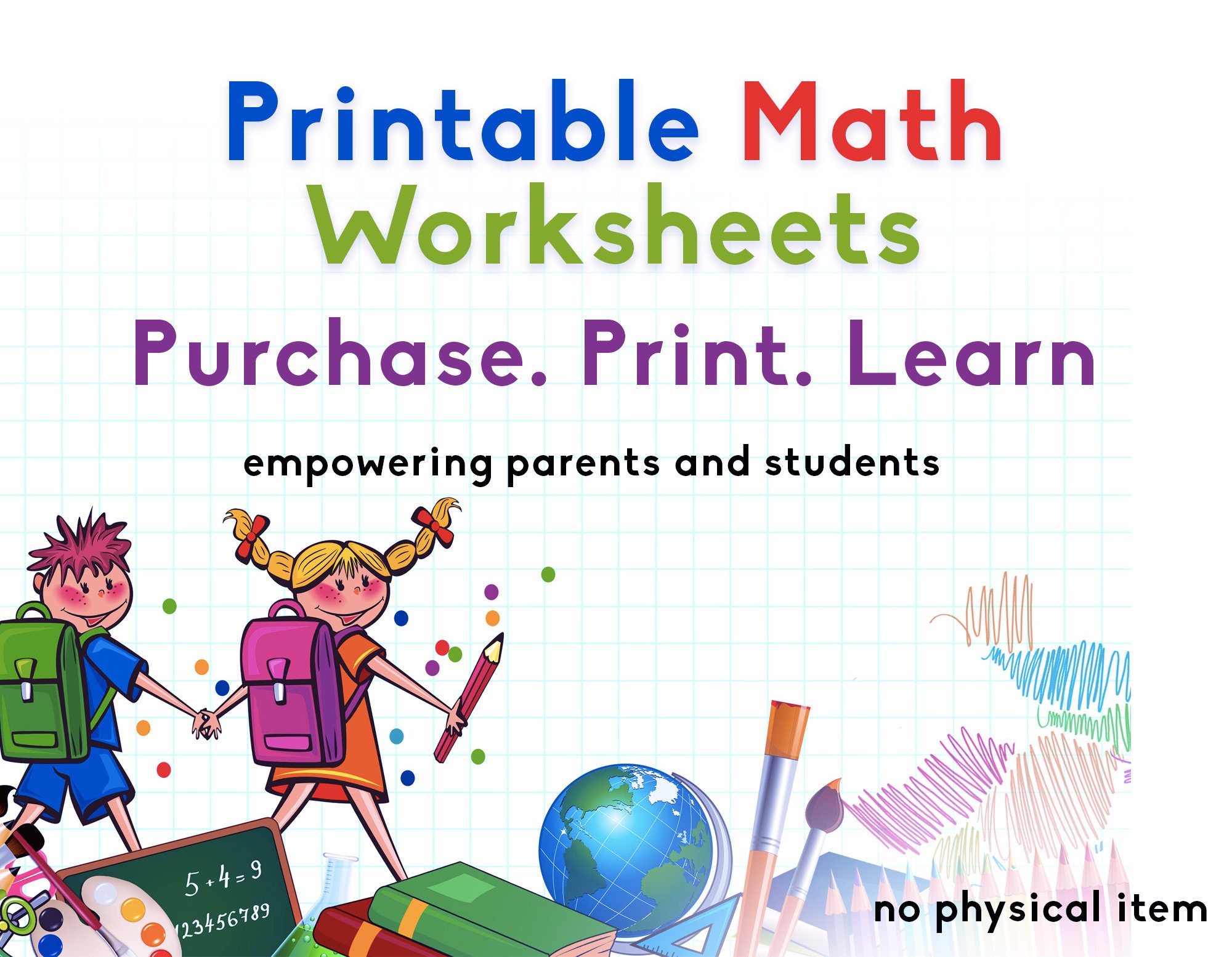 5 Printable Math Worksheets | Adding, Subtracting, Dividing, Fractions, Multiplications | Learning Activity Worksheet | Instant Download